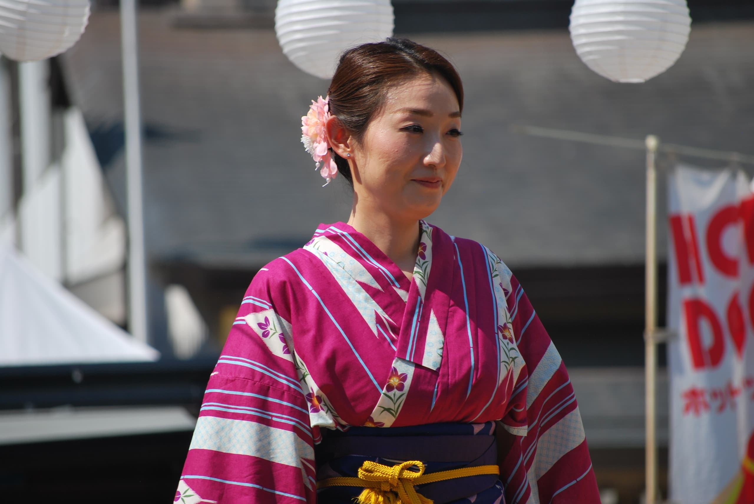 横浜在住の、ウクレレシンガー兼フラダンサーのYURIcoさんが夢二スタイルに挑戦します。夢二のさまざまな絵から感じ取った艶やかさを表現し、代表作"夕月(ゆうづき)"をベースに着方と雰囲気で夢二の世界観を繊細に再現し夢二の魅力が表れており、まるで絵画から抜け出してきたかのような優美な佇まいです。YURIcoさんならではの夢二スタイルをご覧ください。